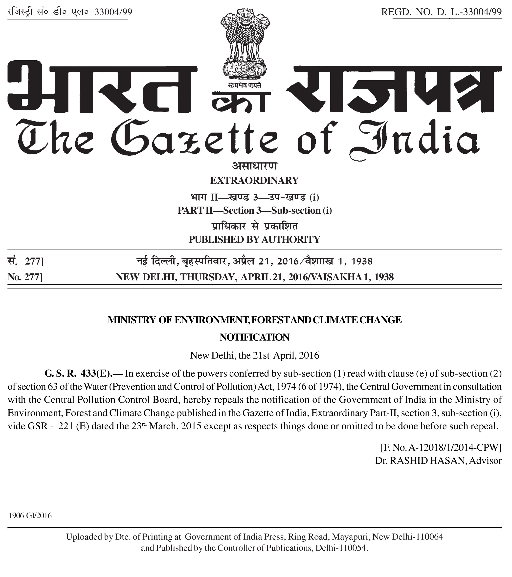 Notification: 21st April 2016 -G.S.R. 433(E)