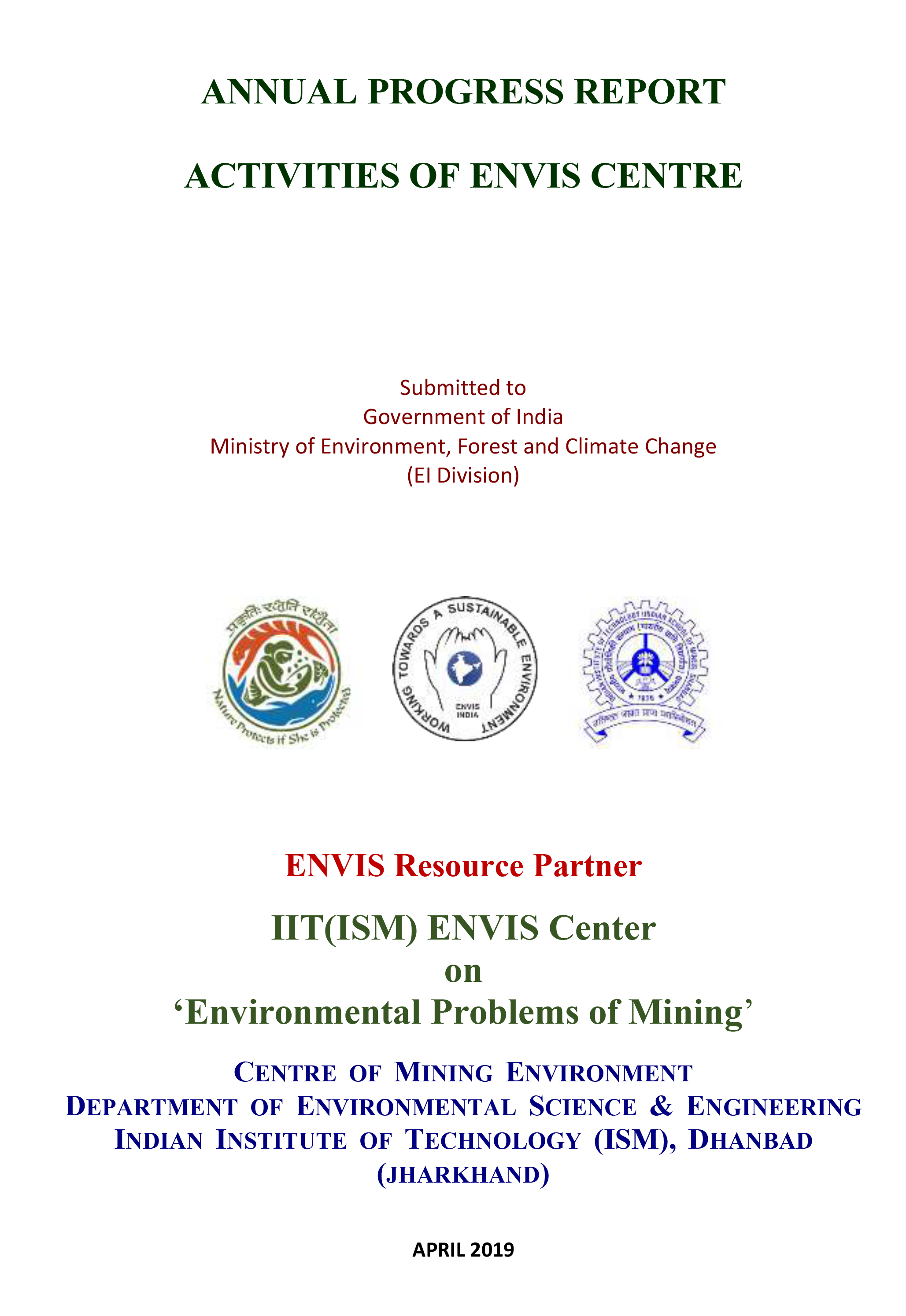 Title: Annual Report [2018-19] KeyWords: Annual Progress Report, IIT(ISM) ENVIS Center Annual Report, 2018-19 Annual Report Printed Year: 2019 Details: